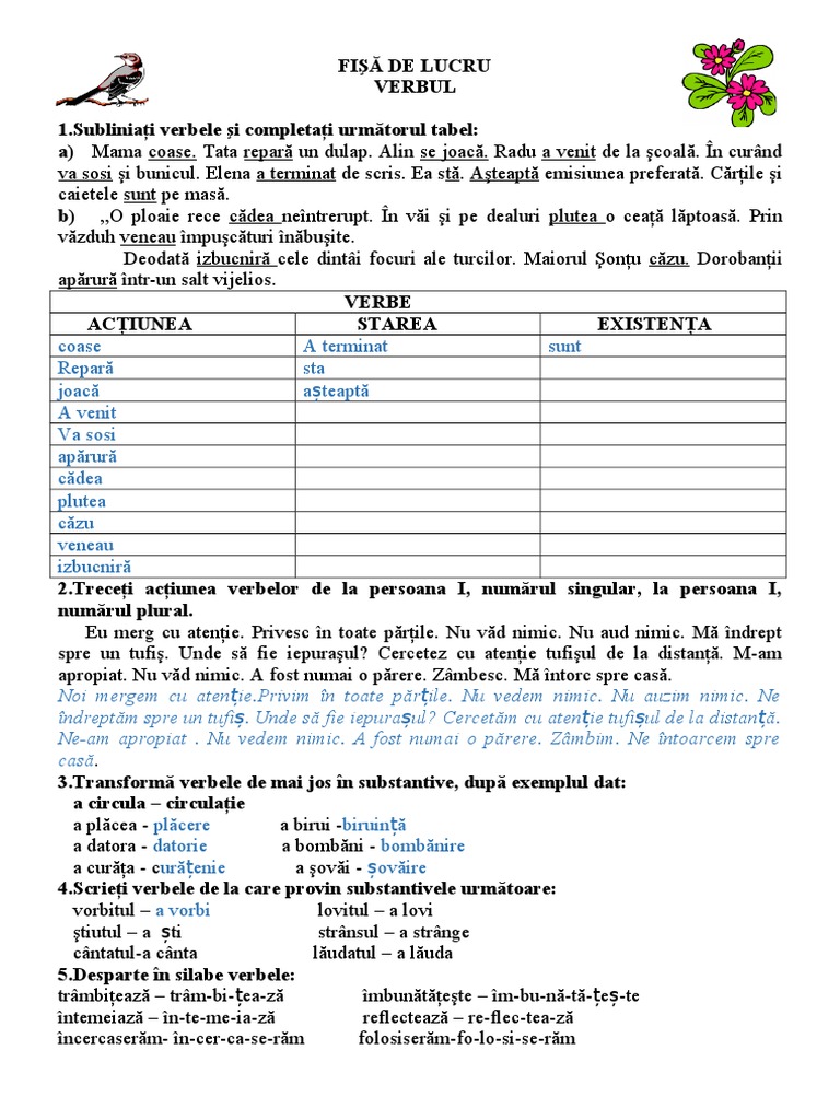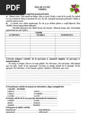 Fise De Lucru Limba Romana Clasa 3 Verbul