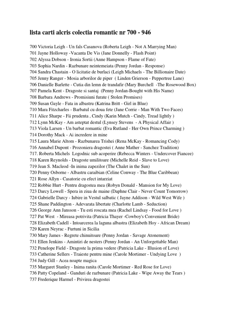 Lista Carti Colectia Romantic 700 946 Leisure
