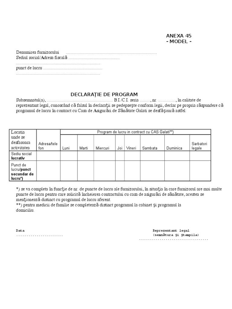 Model Program De Lucru Anexa 45 Doc
