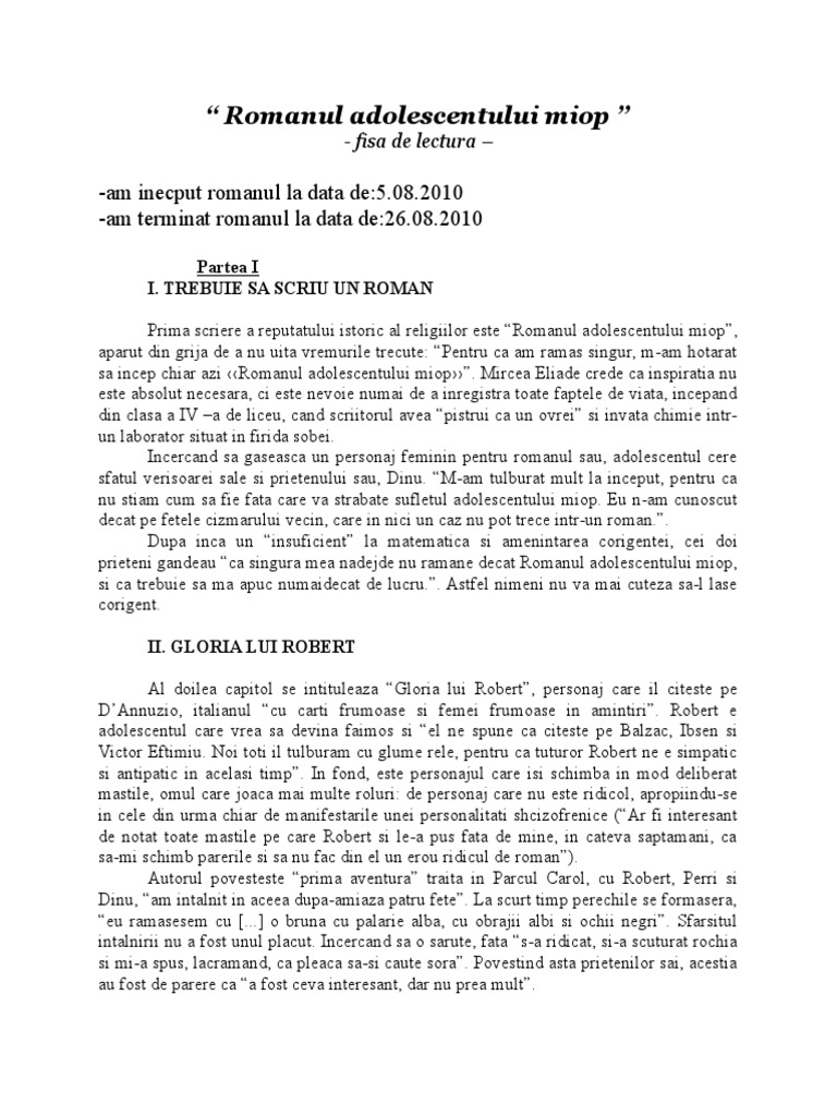 52124504 Romanul Adolescentului Miop Rezumat Pdf Document