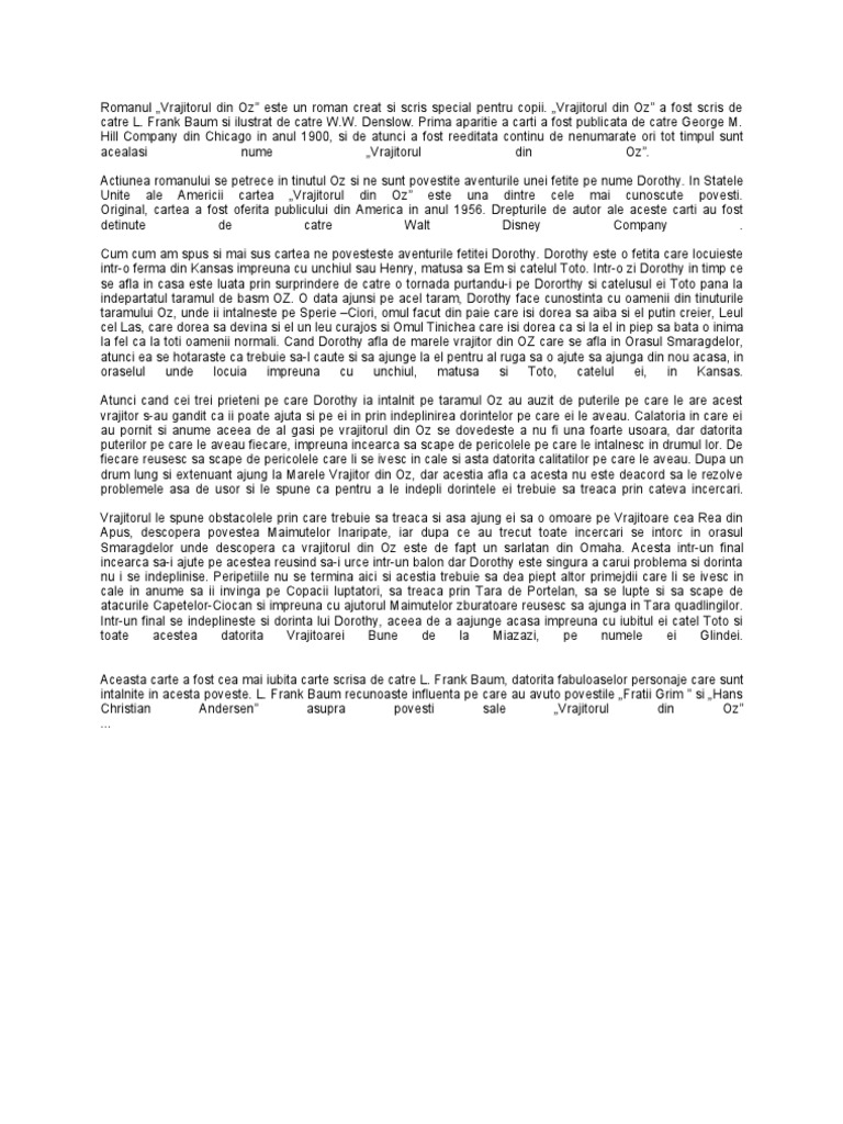 Rezumat Vrajitorul Din Oz Mwl11090p2lj