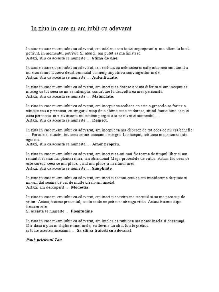 Ziua In Care M Am Iubit Cu Adevarat